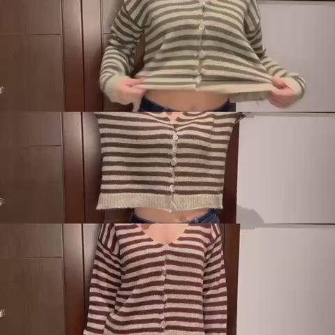 Chaqueta de lana suave, cuello en pico y rayas que combinan con todo...perfecta para esta temporada. Disponible en tres colores preciosos.